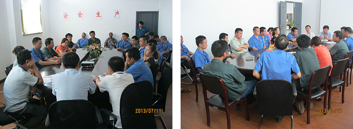大會由總經理朱熙主持,孫向南、施德龍和李穆藝分別發言,主要就車間生產中的用電安全,操作過程中的安全問題,防火意識和防暑措施等作了詳細說明和交流。車間全體員工積極參與,暢所欲言,提出很多可行性建議。大會上還提出了公司安全生產標語:安全生產,人人有責;安全第一,預防為主。希望車間工人在生產工作中要時時注意自身安全和身體健康,同時公司也為員工備好了常用藥品,員工可以自行領取,及時預防。