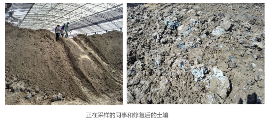 從室外到大棚,我們來(lái)到了土壤修復(fù)后的暫存區(qū),烈日炎炎下的大棚溫度超過(guò)了40℃,大家站著身上都在淌著汗水,這時(shí)見(jiàn)到了正在采樣的同事,為了保障工程能夠保質(zhì)、保量完成,他們不畏酷暑、不怕嚴(yán)寒、不怕臟、不怕累,數(shù)月吃住在工地,為了最干凈的環(huán)境,他們投入到了最臟的工作中去。