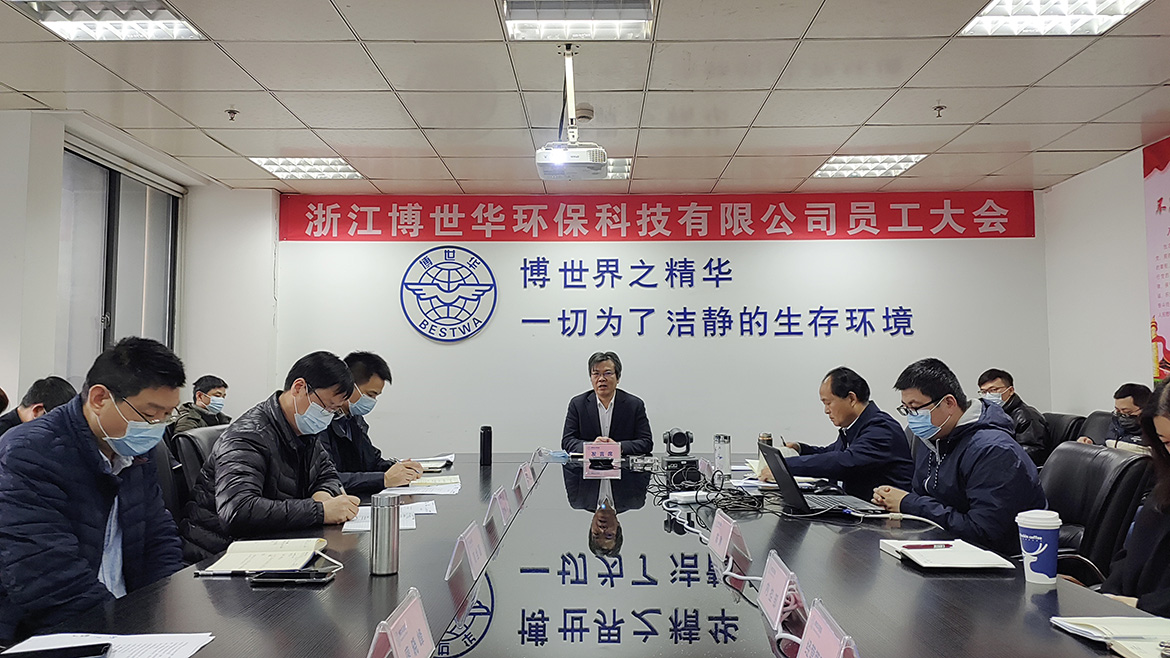 玉鼠呈歡辭舊歲,金牛躍起迎新年。2021年2月5日上午,浙江博世華環??萍加邢薰?020年度員工大會順利舉行。本次大會為了更好地落實疫情防控工作,積極響應政府的防疫管控措施,大會采用釘釘視頻直播的形式召開,公司常務副總經理謝文岳主持了本次會議并代表公司做了2020年度工作報告。
