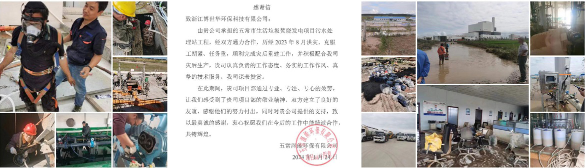 1月24日,公司收到了五常深能環保有限公司的“感謝信”,對公司承接的五常生活垃圾污水處理站項目及災后重建中的優異表現給予了充分的肯定和贊賞,對公司認真負責的工作態度、務實的工作作風,對項目部專業、專注、專心的敬業精神給予了高度評價和真誠謝意。這一份來信,就象冬天里的一把火,點燃了公司2024年的興旺開端。